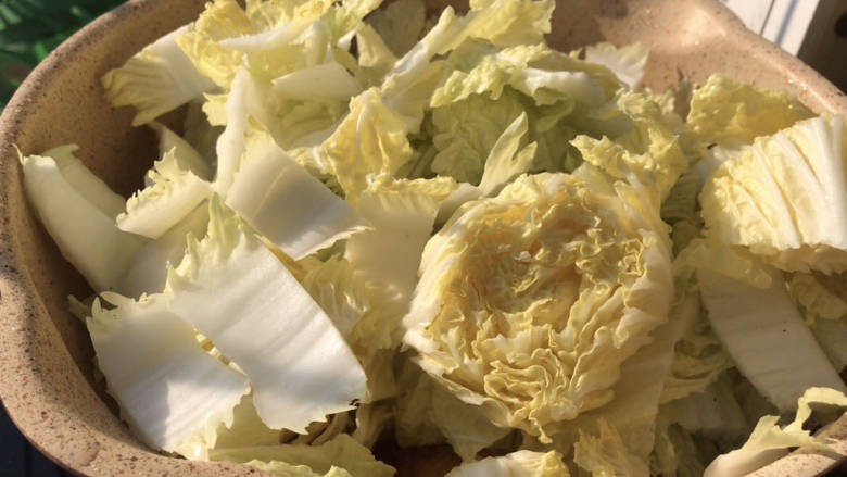 2. 大白菜掰开洗净,切去根本,再切成小段备用