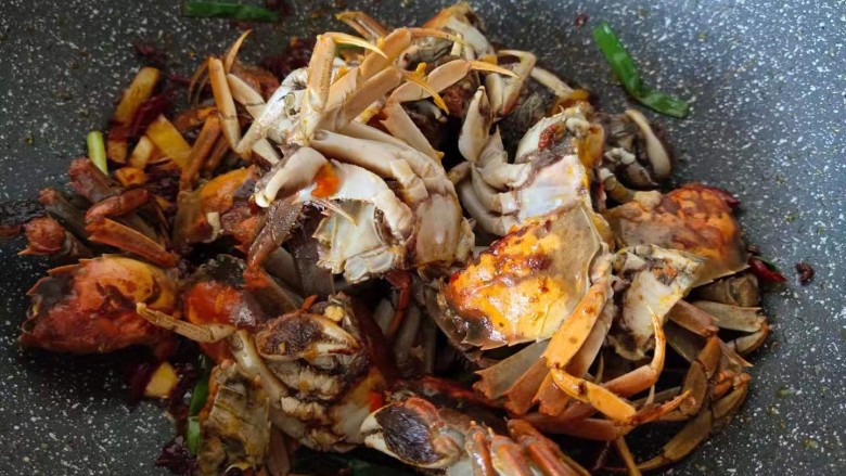 9. 余油炒香花椒,姜丝,干辣椒,葱段