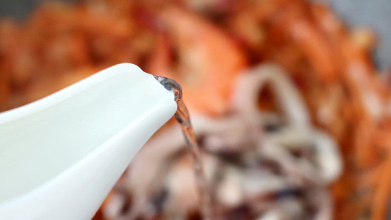 10. 加入虾和鱿鱼。