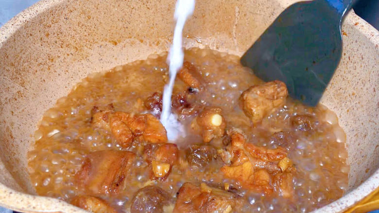 7. 加入适量清水、葱姜蒜煮沸后,盖上锅盖炖煮半小时左右