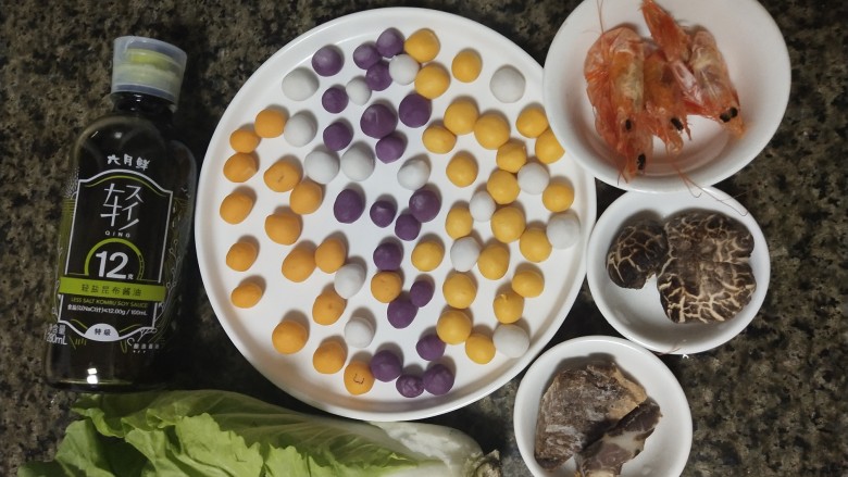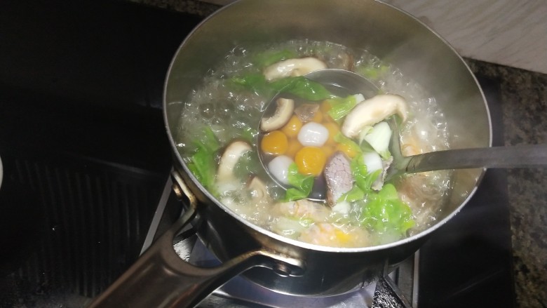 4. 锅里放入开水,把小丸子全倒进去,烧至全部浮上来后,捞出备用