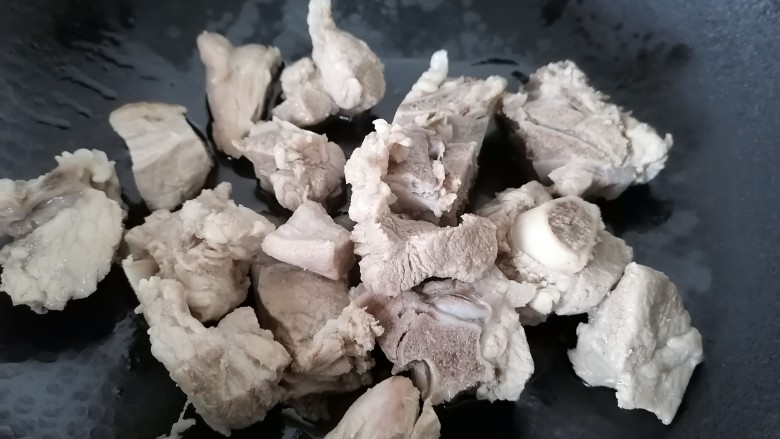 8. 锅内放油烧热放入排骨
