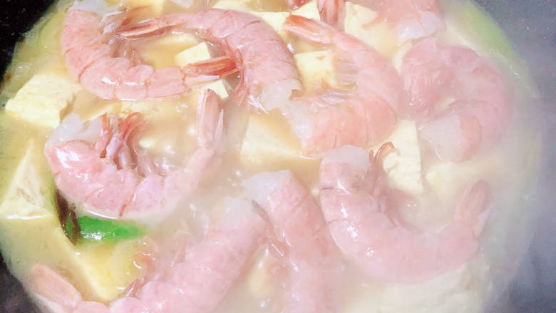 9. 加入大虾,盖盖儿继续慢炖10分钟。