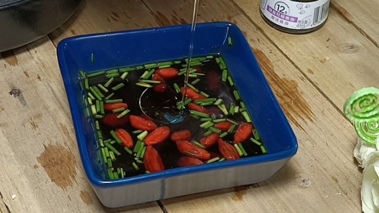 6. 约15分钟后,取出蒸熟的萝卜,将汤汁沥入味碟中