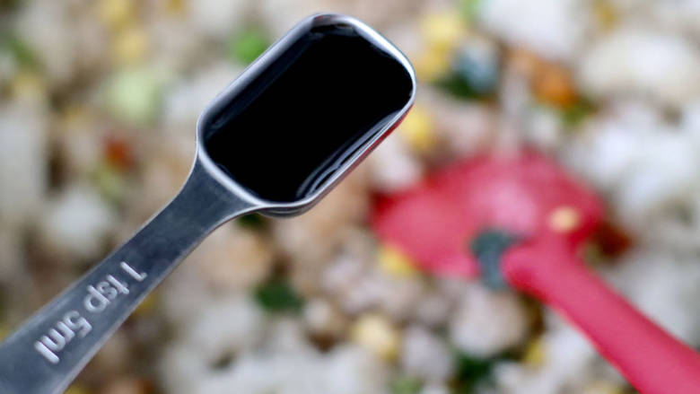 9. 大火快速翻炒1分钟后,加入打散的米饭。