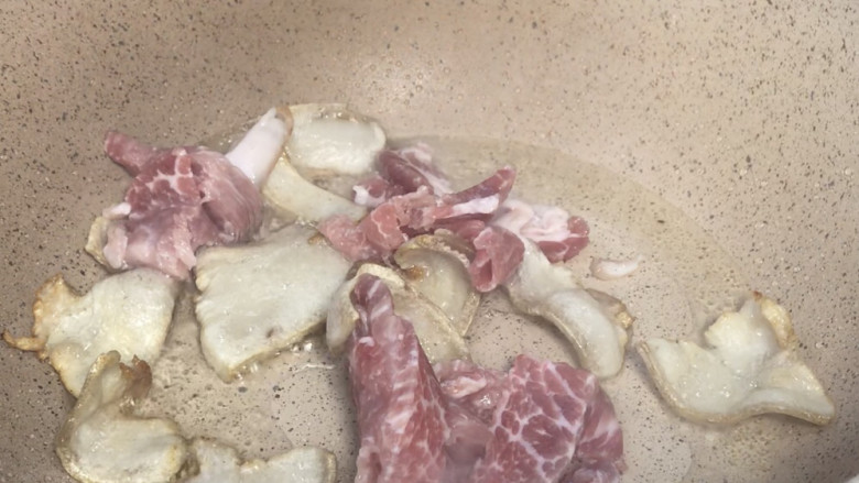 1. 猪肉洗净后,肥瘦分别切成薄片备用