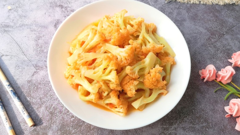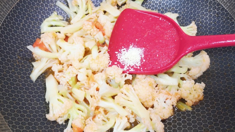 5. 锅内放水烧开,下入花菜焯水,捞出控一下水分备用。