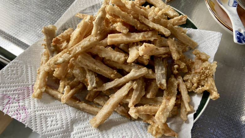 11. 炸到藕条酥脆,表面起硬壳,沥油盛出