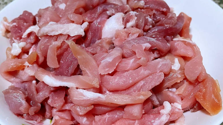 - 将干淀粉抓匀反复摔打使肉丝上劲盖上保鲜膜煨制二十分钟入味最后淋上少许油抓匀这样入油锅后不易粘连