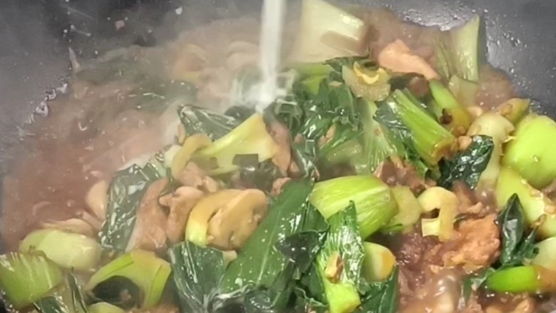 12. 10分钟后淋入生抽拌匀,再淋入淀粉水勾芡