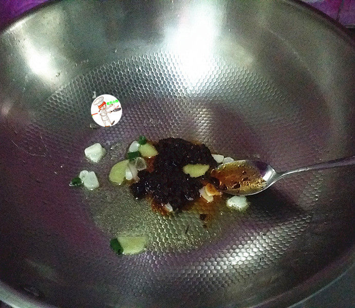 12. 重新倒油,下葱姜蒜爆香,再放入1勺香菇豆豉辣酱
