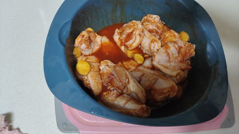 4. 将鸡翅放入盆中。