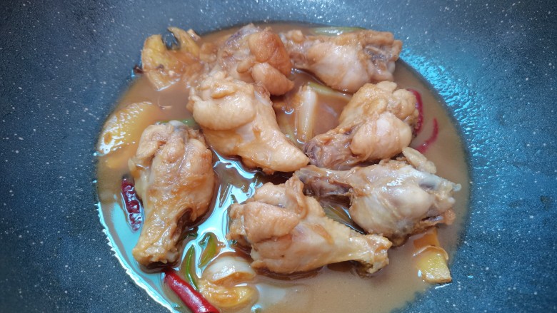 8. 加少许的水,放入姜,蒜,葱,小米辣
