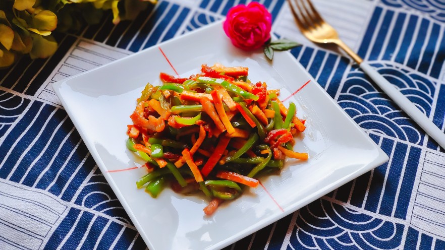 辣椒豆腐干小炒肉是很家常的一道菜,会在饭桌上常常见到,因为它好吃好做,所以很受大家欢迎。它味道鲜香,令人食欲大开。最关键的是,辣椒中含有丰富的维生素c,而肉中的铁含量是很丰富,将辣椒和肉炒起来,这样就可以营养翻倍,这是因为维生素能够促进铁的吸收,所以对身体健康更有利!
