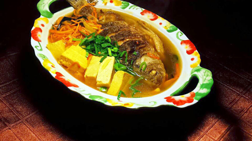 - 煮鱼汤的豆腐,除了普通豆腐之外,冻豆腐也是不错的选择,更能吸附汤汁。炖鱼加入少许肉丝,会有鱼羊"鲜"的效果