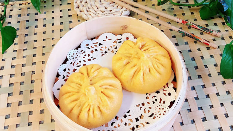 17. 漂亮的南瓜色酱肉豆腐包子就上桌了!