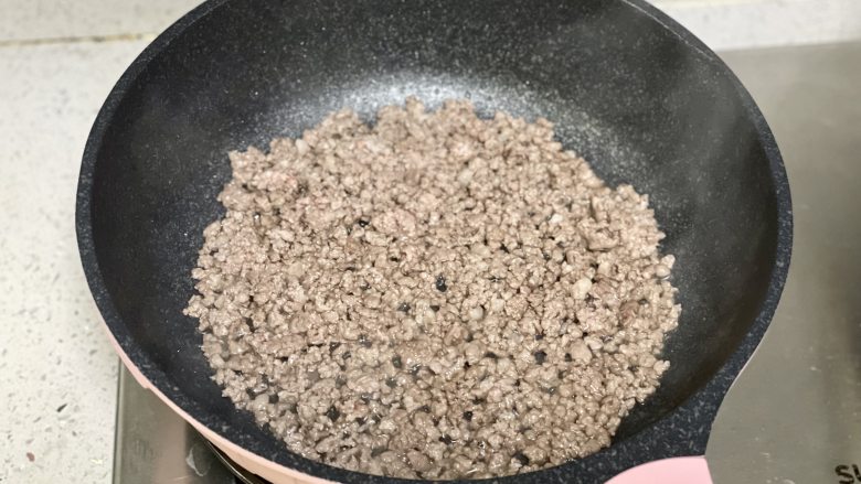 4. 锅中加入适量食用油,加入肉沫和1勺料酒翻炒变色盛出备用