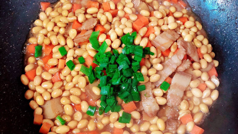 10. 肉香四溢的五花肉焖黄豆就上桌了!