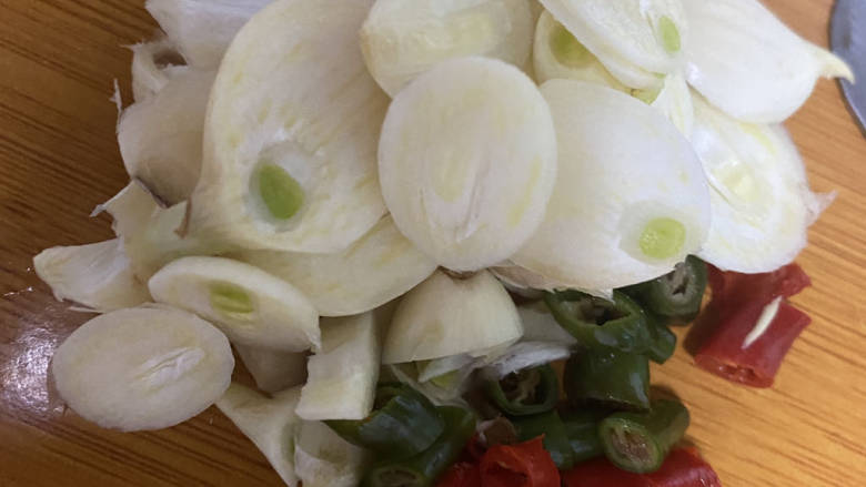 4. 备好配料,姜大蒜切片,辣椒切粒