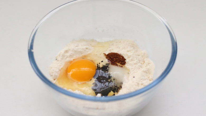 7. 和成面团,盖上保鲜膜松弛半个小时。