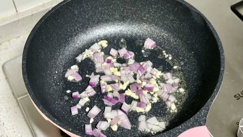 3. 加入胡萝卜丁和玉米粒翻炒一会儿,再加入火腿一起翻炒