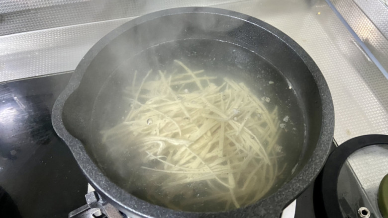 7. 加入笋丝焯水两分钟捞出