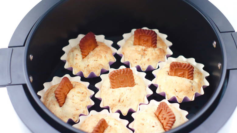 11. 空气炸锅提前预热,放入做好的海盐焦糖司康胚。