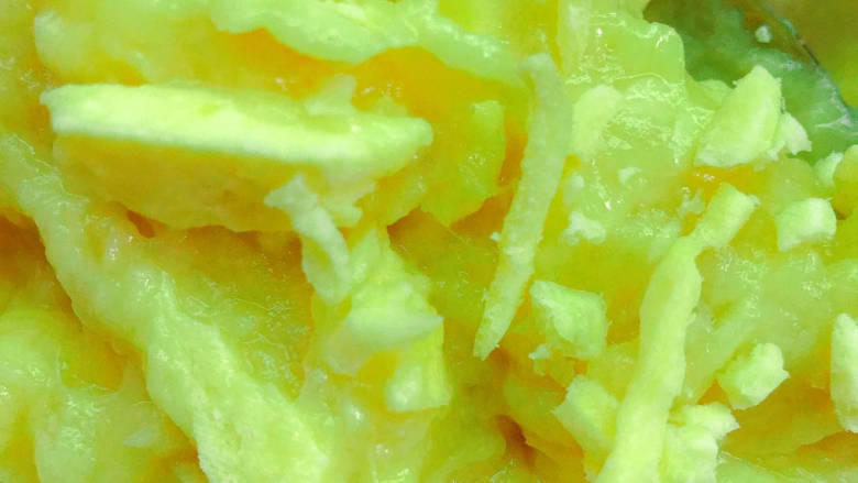 9. 取适量奶酪丝放入榴莲肉中拌匀(多少无所谓,根据自己喜好增减,不加也可以)