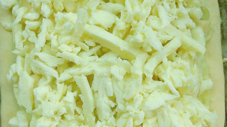 12. 撒上一层奶酪,再抹上榴莲肉