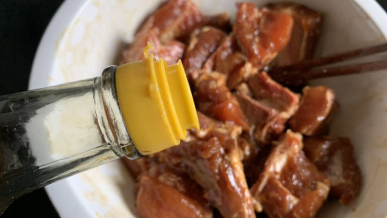 5. 撒上十三香,抓拌均匀,腌制一会入味