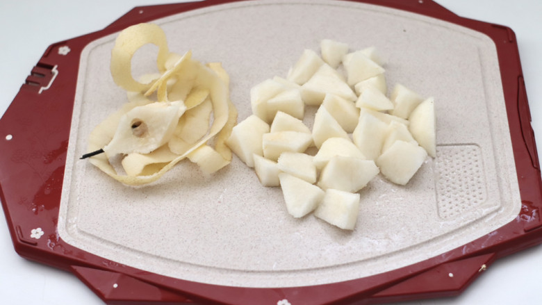 5. 锅中倒入适量清水,放入雪梨块和马蹄。