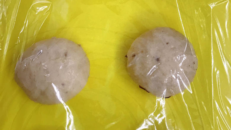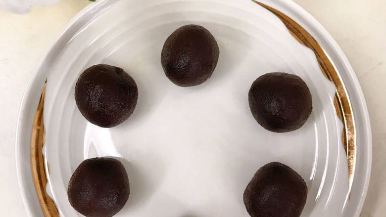 17. 取出一块捏成圆皮,包入一份红豆沙馅