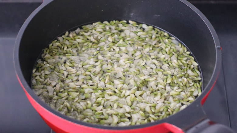 1. 首先把摘洗干净的槐花芽,焯水捞出沥干水分备用。
