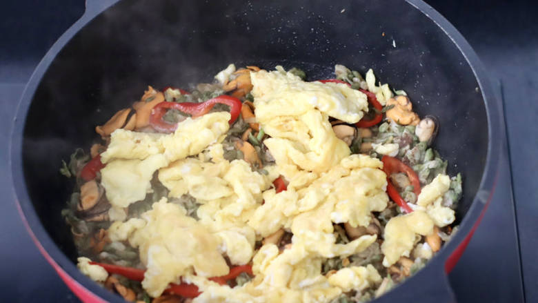 12. 放入炒熟的鸡蛋。