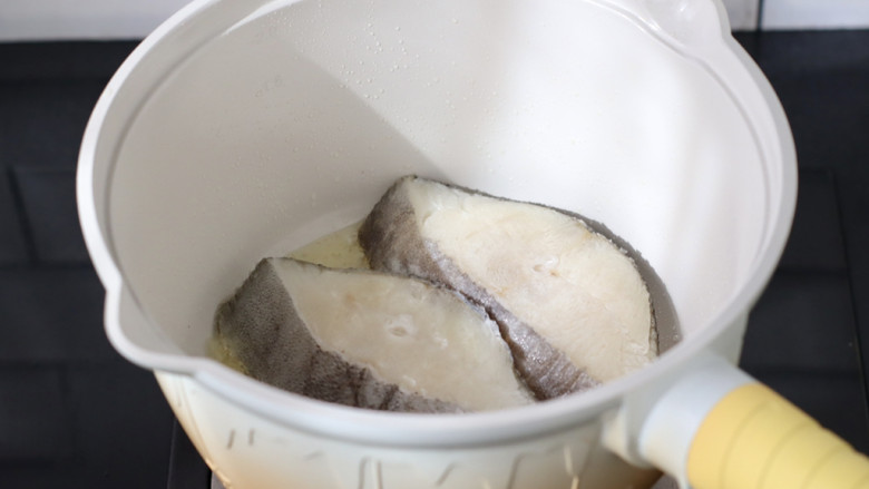 5. 比目鱼块放入煎豆腐的油锅开始煎制。