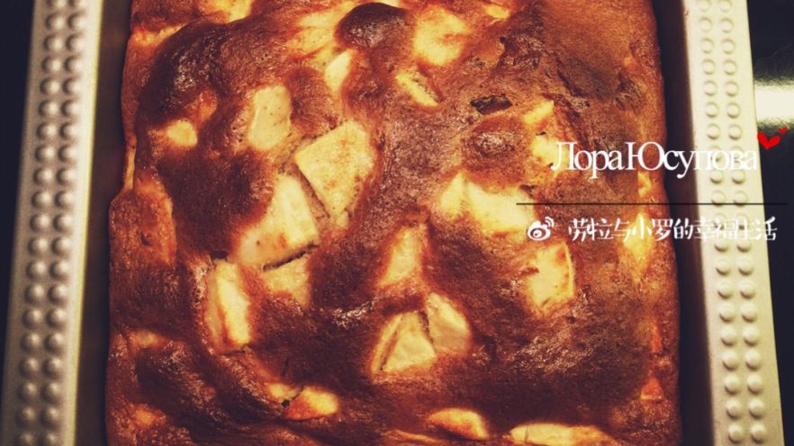 3. 将一杯面粉、一匙蓬松粉、一匙肉桂粉、苹果块一起放入搅拌.