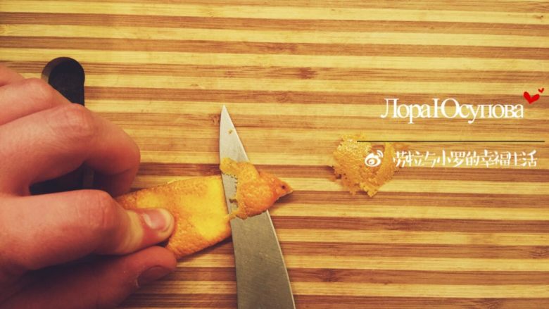 4. 将鲜桔皮切丝放入、只要外面薄薄的部分.记得先做清洗哦.