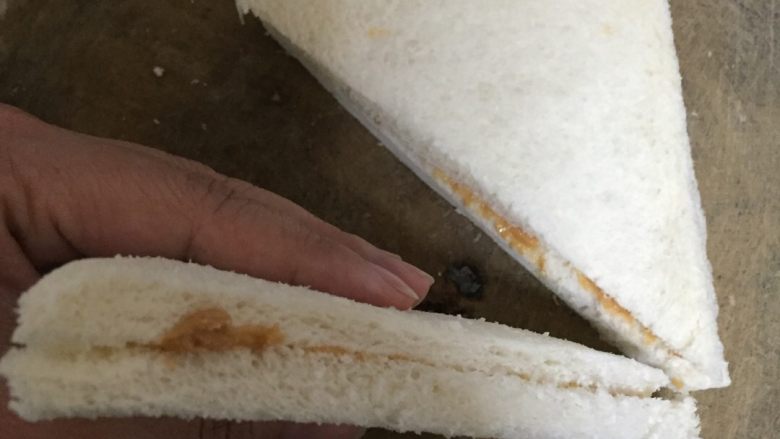 4. 刚好一包花生小酱涂满2个三角形吐司