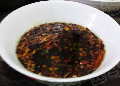 8. 锅中注入油,下入麻椒和辣椒碎小火煸炒出红油,趁热倒入料汁中。成麻辣料汁