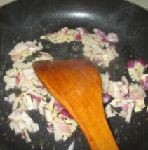 7. 放入口蘑,以中火炒出水分,放入白葡萄酒