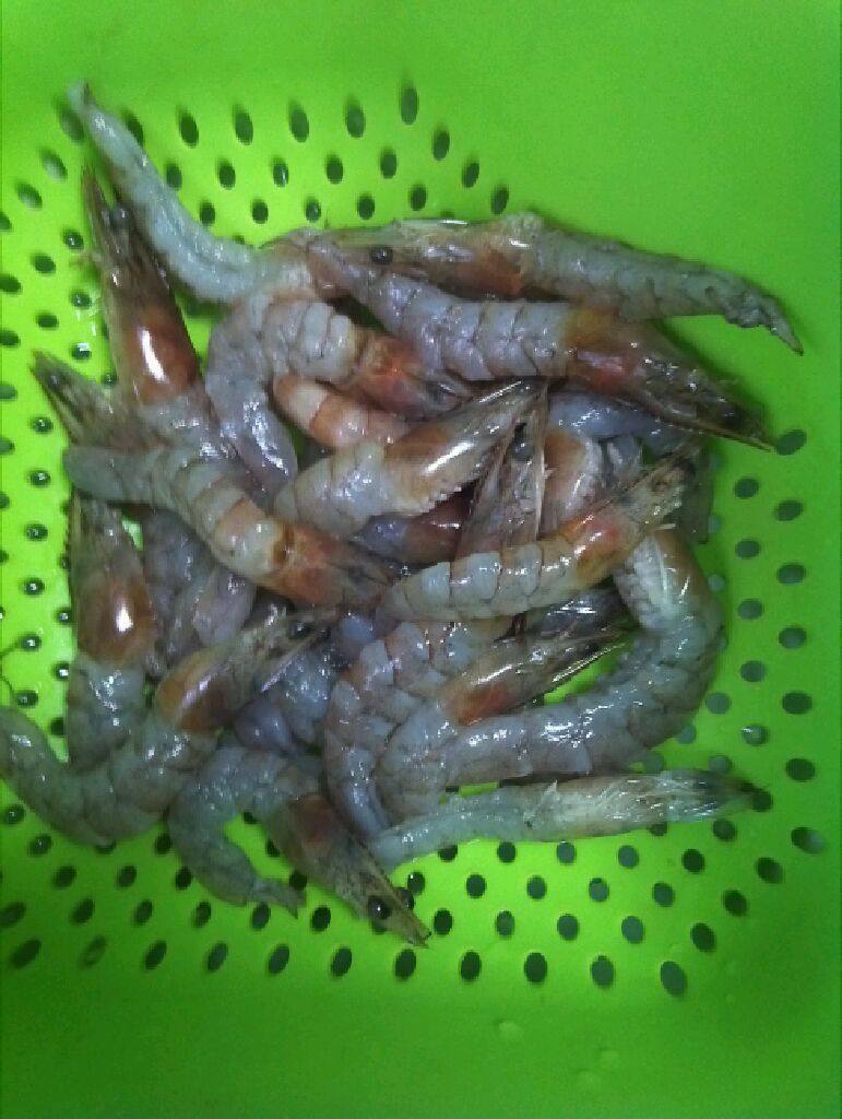 1. 虾留头去壳,去掉沙线,洗干净,控水。