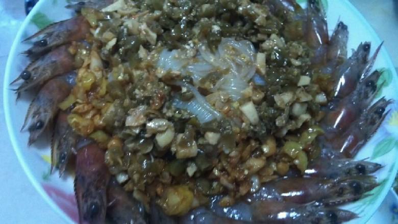- 炒料一定满满铺在虾肉上,好入味。如果不喜欢泡椒太辣,只放蒜也是可以的。