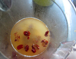 7. 加入去核的红枣,同时加水到豆浆机上下水位之间