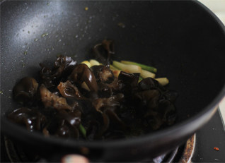 4. 放入葱白部分煸炒,煸炒至葱白微微焦黄为好