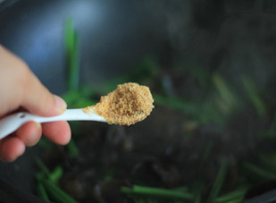 8. 放入牛肉粉调味,葱叶变软即可出锅