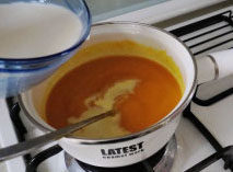 3. 将南瓜泥倒入锅中小火加热