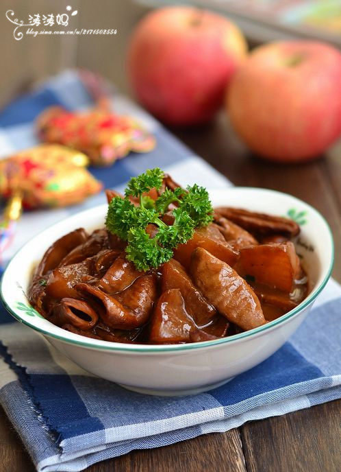 6. 再加完全没过所有材料的水,大火烧开,转最小火慢卤45分分钟,至汁收稍干