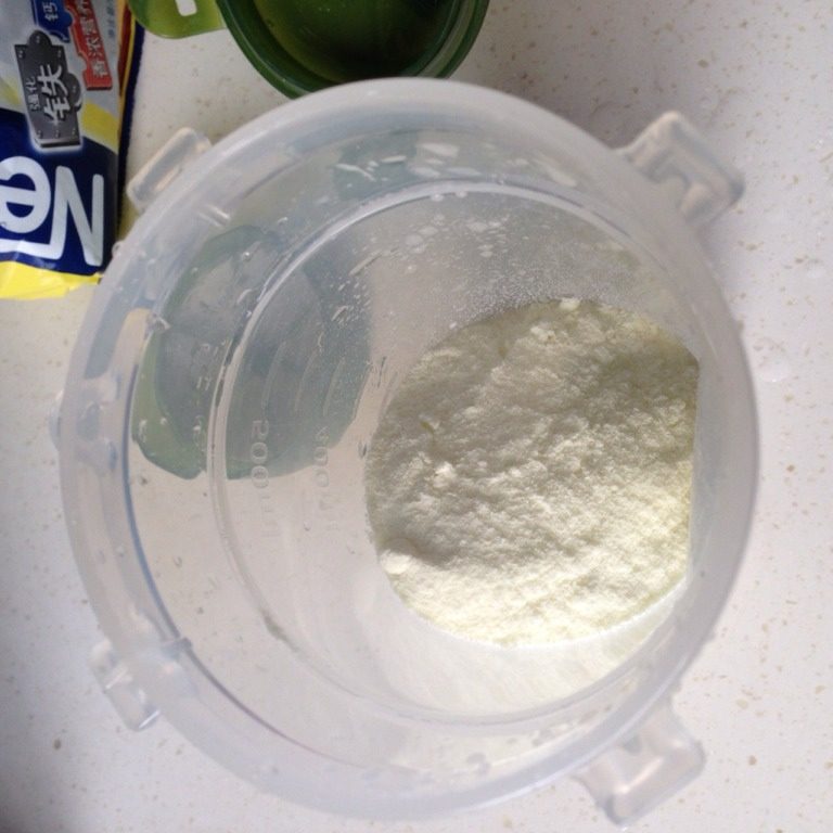 2. 将全脂奶粉放入容器中。