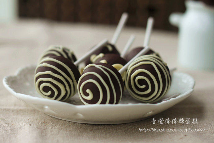 17. 包裹好巧克力的棒棒糖蛋糕,放在适合的地方(我直接扎在泡沫上了),直至巧克力表面凝固