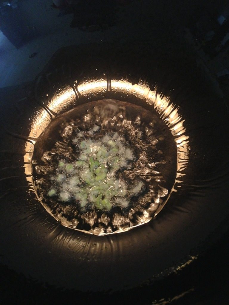 7. 重新启锅,热锅放油,热至八分放入葱末爆香